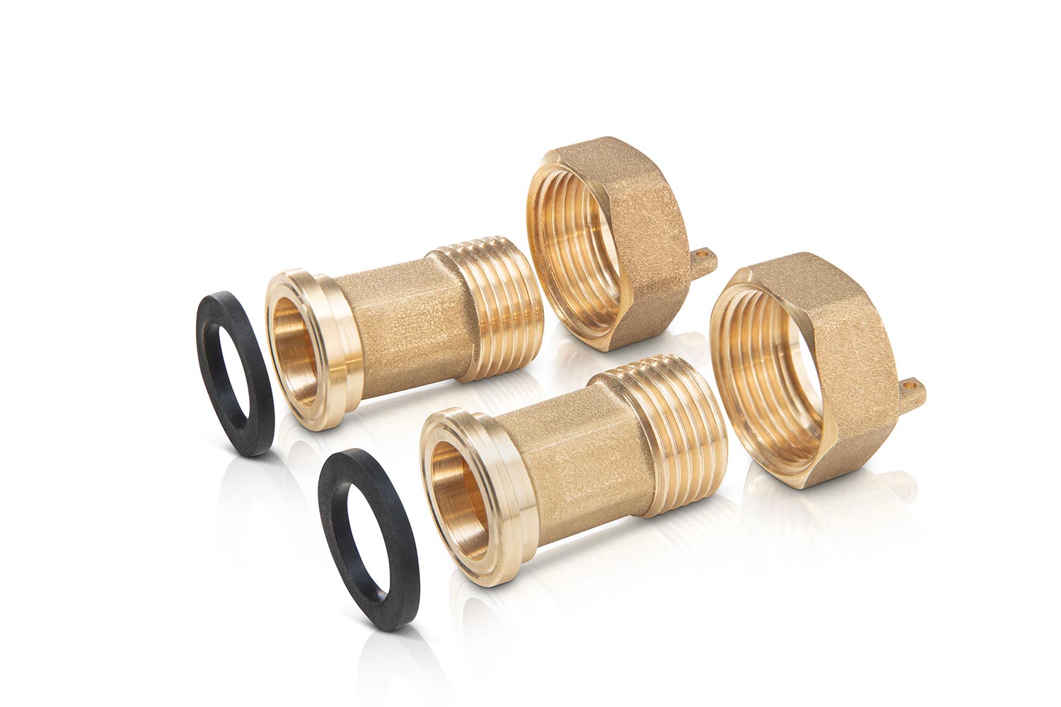 Bonpress ist auch in der Fertigung von Verschraubungen für sowohl Standard- als auch -nach Zeichnung-Wasserzählern tätig, wobei die Möglichkeit besteht, Sets zu liefern, die aus Tülle, Mutter und Dichtung in Polyäthylen Säckchen bestehen, die mit dem Logo des Kunden personalisiert werden können.